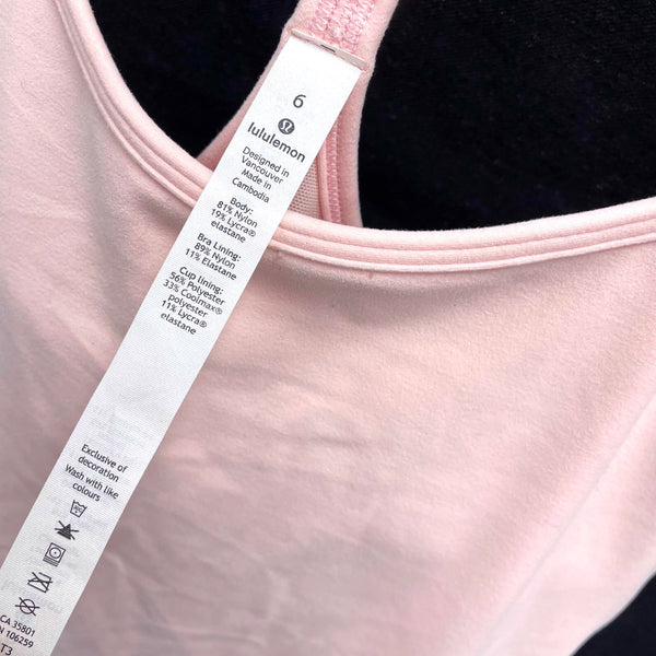 Wmns LULULEMON Soft Light Pink Power Y Built In Bra Racerback Tank Top Sz 6